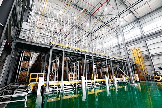 目前整個智能倉儲系統(tǒng)有5600個庫位,可以輕松“吃”下1.5萬平方米普通倉庫的貨物量,是普通倉庫存儲量的6倍,極大提高了工作效率。